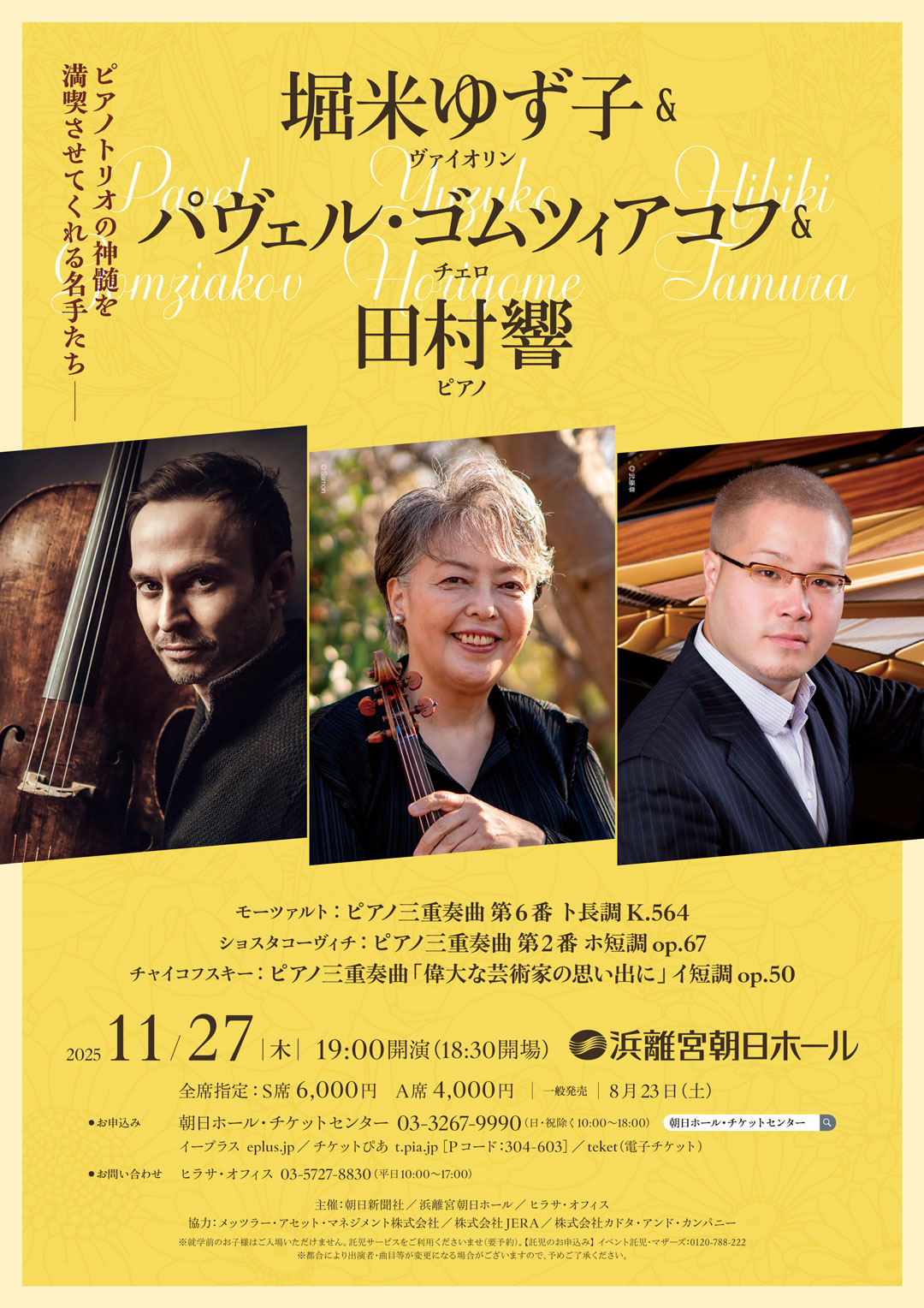 « All Events Mozart, Chostakovitch & Tchaïkovski @Tokyo November 27 @ 19 h 00 min « Mozart, Chostakovitch & Tchaïkovski @Hyogo Masterclass Brescia TALENT MUSIC MASTER COURSES 2026 » Add to calendar Google Calendar iCalendar Outlook 365 Outlook Live Details Date: November 27 Time: 19 h 00 min Event Categories: Event, Event, Event